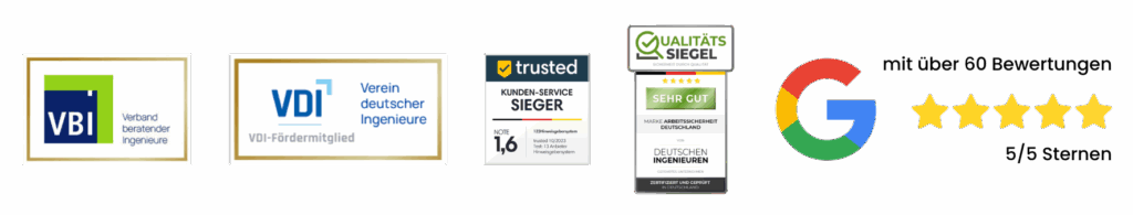 Mit der 123 Ingenieure GmbH haben Sie einen Dienstleister aus Ihrer Nachbarschaft. Unsere Experten kommen regelmäßig genau dahin, wo Sie uns brauchen – in Ihr Unternehmen. Auch bei Audits, Begehungen durch die BG oder durch Behörden sind unsere Experten an Ihrer Seite und begleiten Sie.